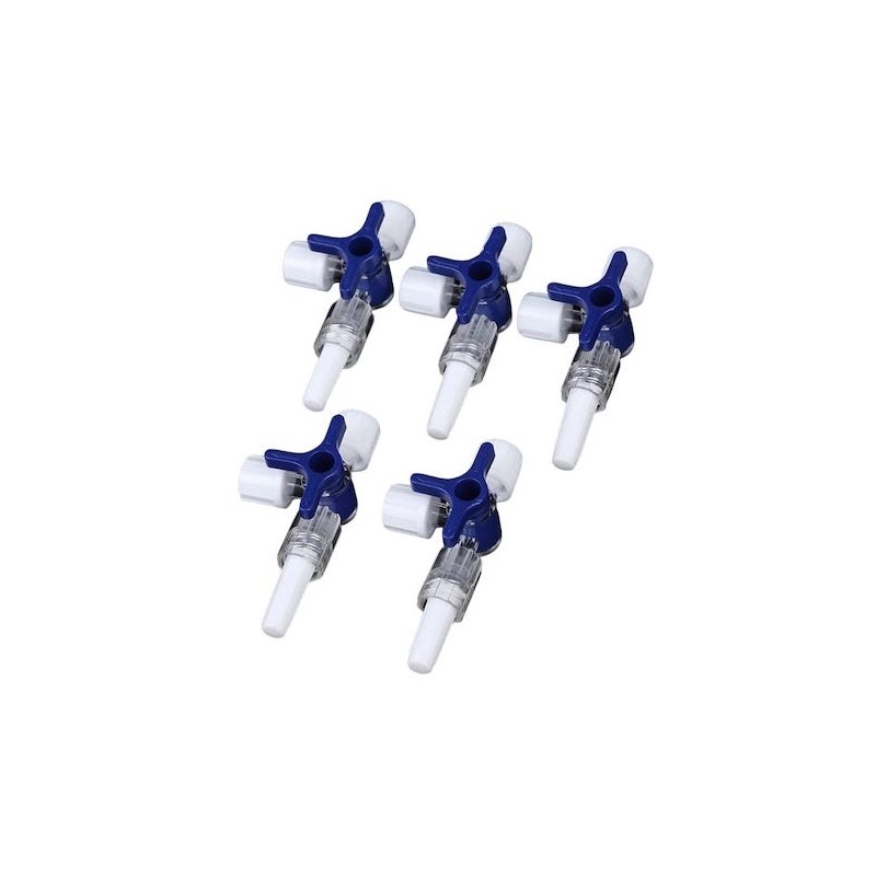 Llaves de 4 vías con marcas indicadoras del sentido en el que fluyen las soluciones y posición de cerrado, sin extensión, de plástico, estéril y desechable. Pieza.